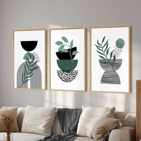 Printable Abstract Wall Art , Boho Wall Prints, Green Wall Art Set of 3