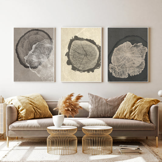Printable Abstract Tree Ring Neutral Wall Art Set of 3