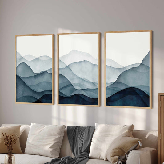 Printable Abstract Blue Landscape Watercolor Wall Art Set of 3