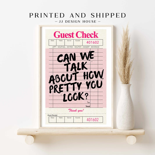 Printed Pink Guest Check Wall Art - Retro Dorm Room Decor Aesthetic