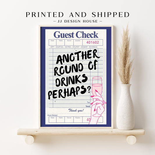 Printed Retro Wall Art - Guest Check Print Bar Cart Decor Drinks College Dorm Room Aesthetic