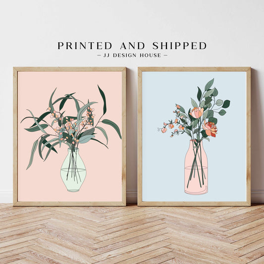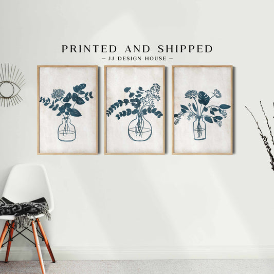 Printed Minimalist Botanical Watercolor Set of 3 Prints