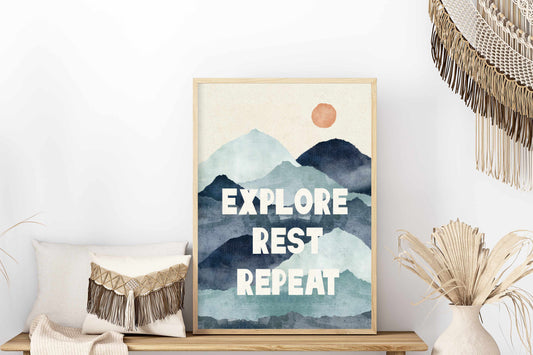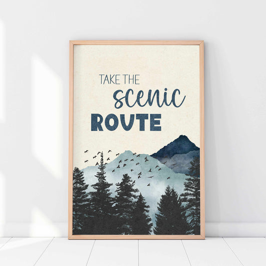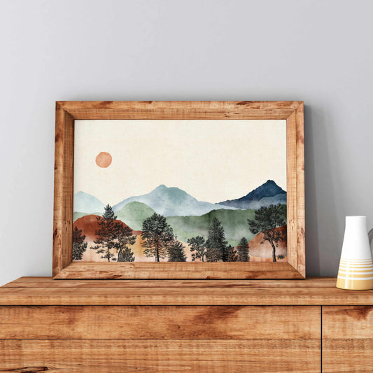 Printable Mountain Cabin Wall Decor - Blue Landscape Print for Nature Lovers
