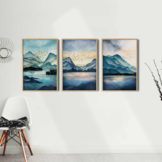 Printable Colorful Watercolor Mountain Wall Art Printable Set of 3