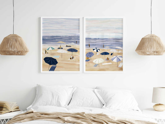 Printable Beach Wall Art Scene - Coastal Decor Prints Umbrella Painting Poster