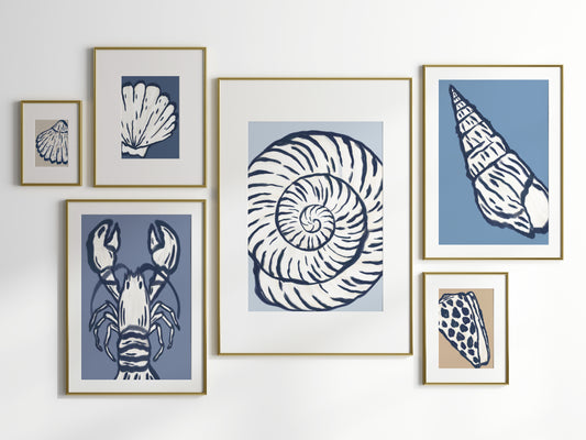 Printable Coastal Wall Art - Seashell Beach Prints Set of 6 - Modern Home Decor