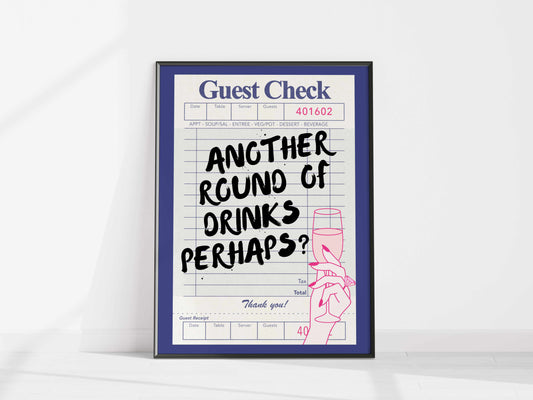 Printable Retro Bar Cart Decor - Maximalist Room and Dorm Wall Art Guest Check Poster