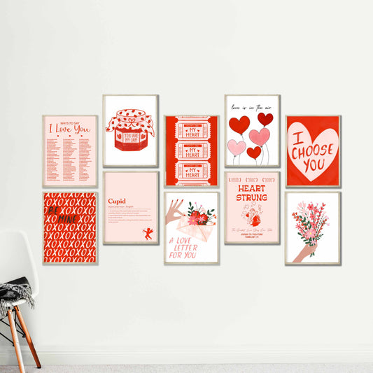 Printable Valentines Decor Printables Set of 10 - Couple Love Pink Red Wall Art