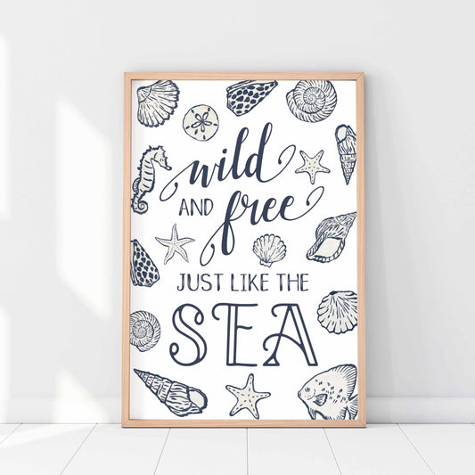 Printable Coastal Wall Art - Wild and Free Just Like the Sea Beach House Decor