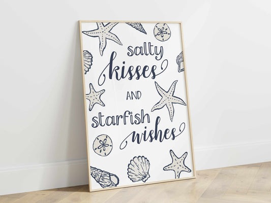 Printable Coastal Wall Art Print - Salty Kisses and Starfish Wishes