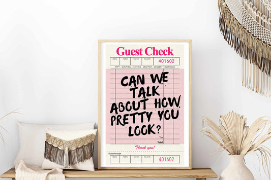 Printable Retro Guest Check Poster - How Pretty You Look Print for College Dorm Decor