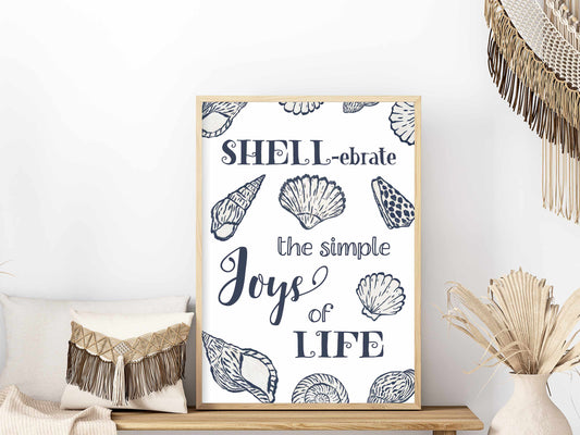 Printable Coastal Beach House Decor - Shell-ebrate the Simple Joys of Life Wall Art Print