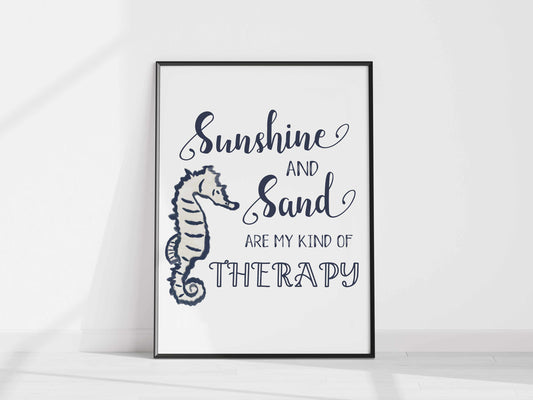 Printable Coastal Wall Art - Sunshine and Sand Therapy Quote Print