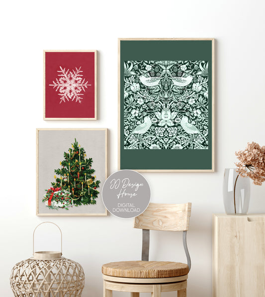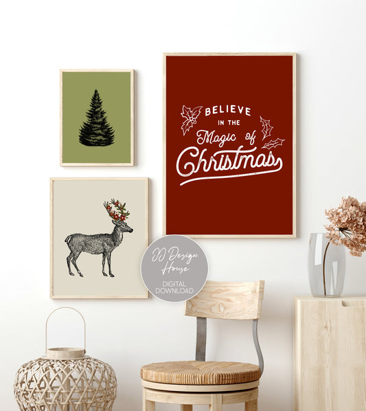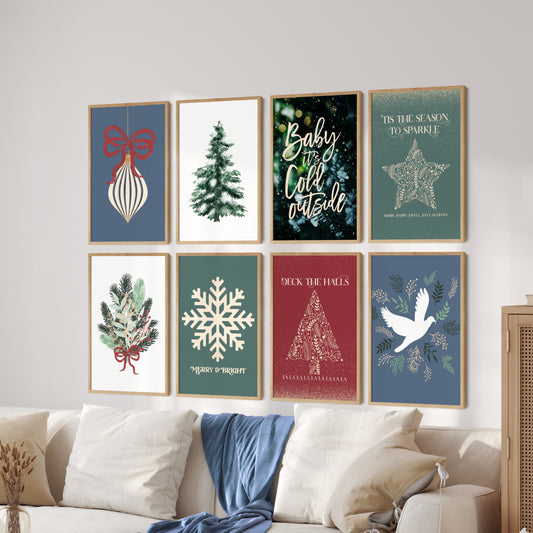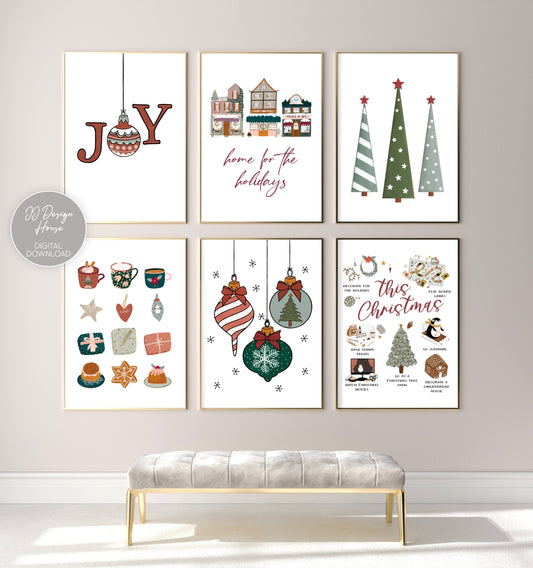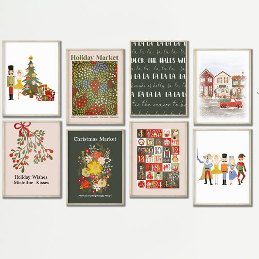 Printable Christmas Art, Gallery Wall Set of 8, Christmas Wall Art Downloadable Prints