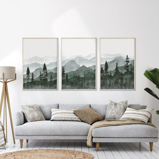 Printable Green Mountain Landscape Set of 3