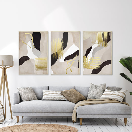 Printable Black and Gold Abstract Print Set