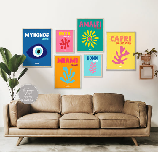 Printable Gallery Wall Set, Travel Art Prints Set of 6, Colorful Wall Art