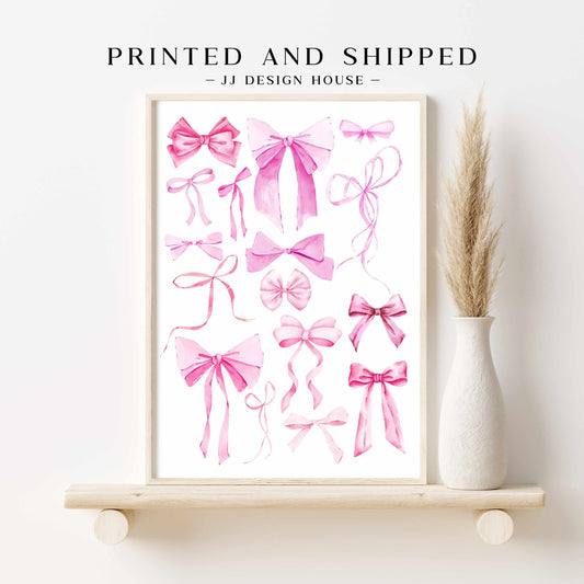 Printed Pink Coquette Room Decor Watercolor Bow Wall Art