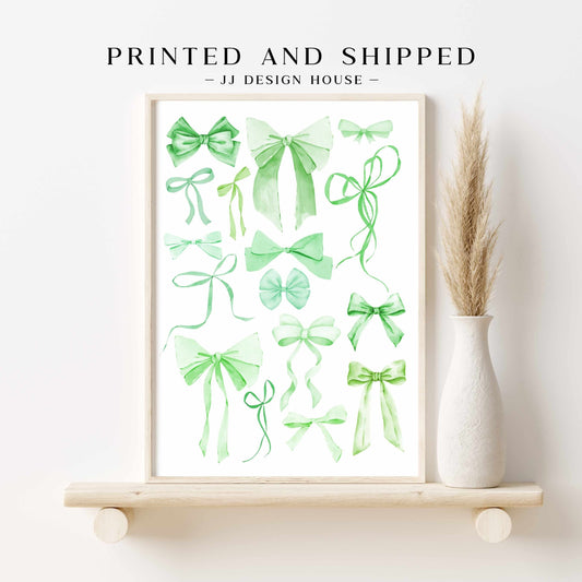 Printed Green Coquette Room Decor Watercolor Bow Wall Art