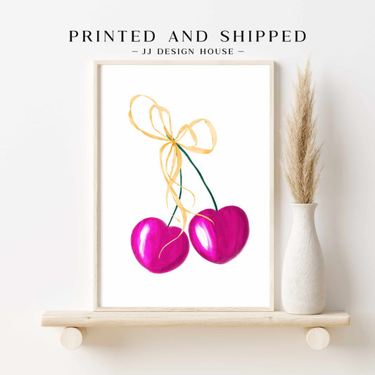 Printed Pink Cherry Wall Art Coquette Room Decor