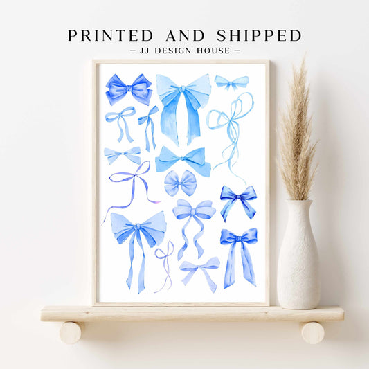 Printed Blue Coquette Room Decor Watercolor Bow Wall Art