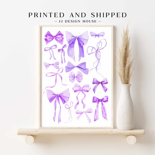 Printed Purple Coquette Room Decor Watercolor Bow Wall Art