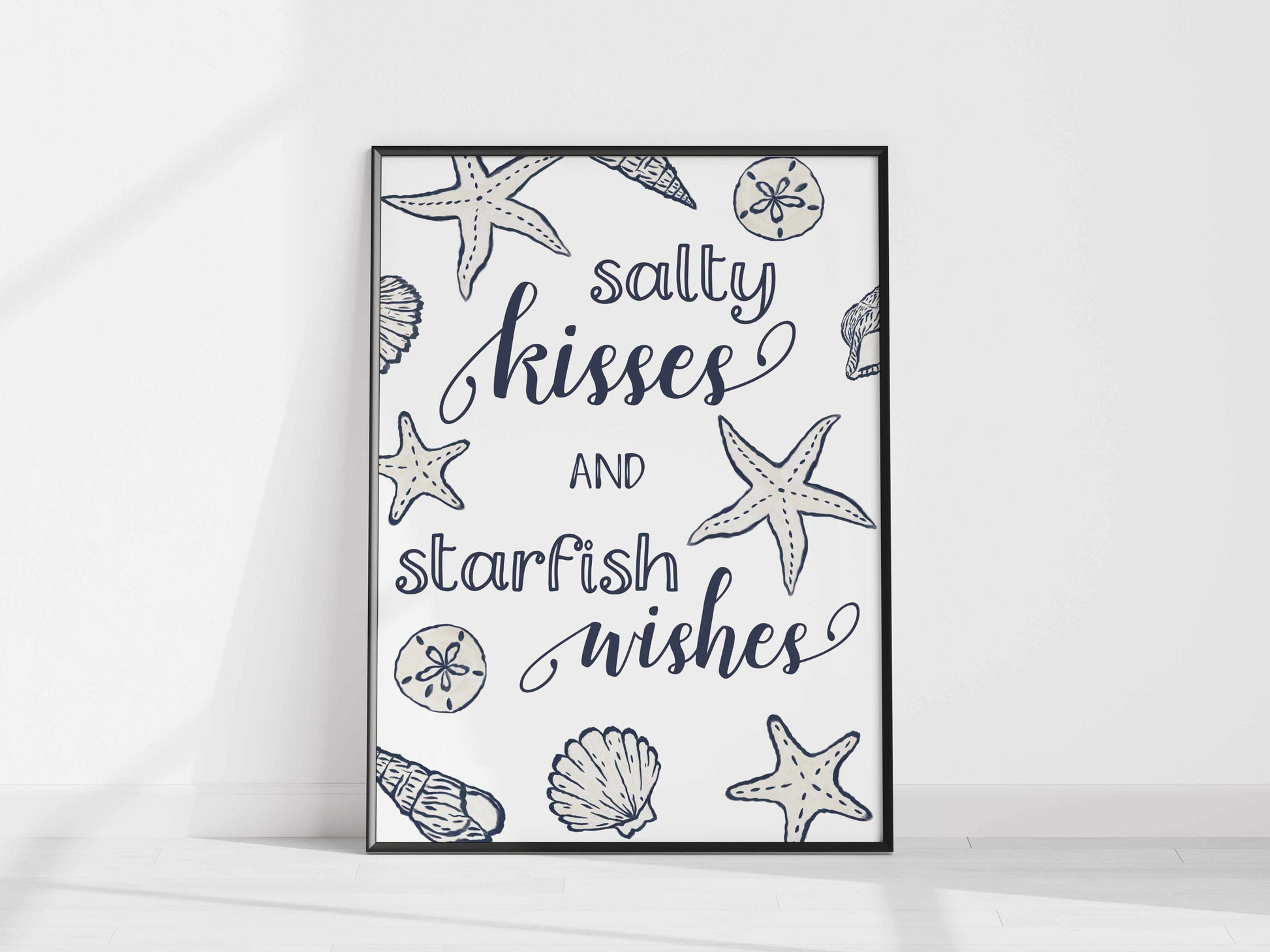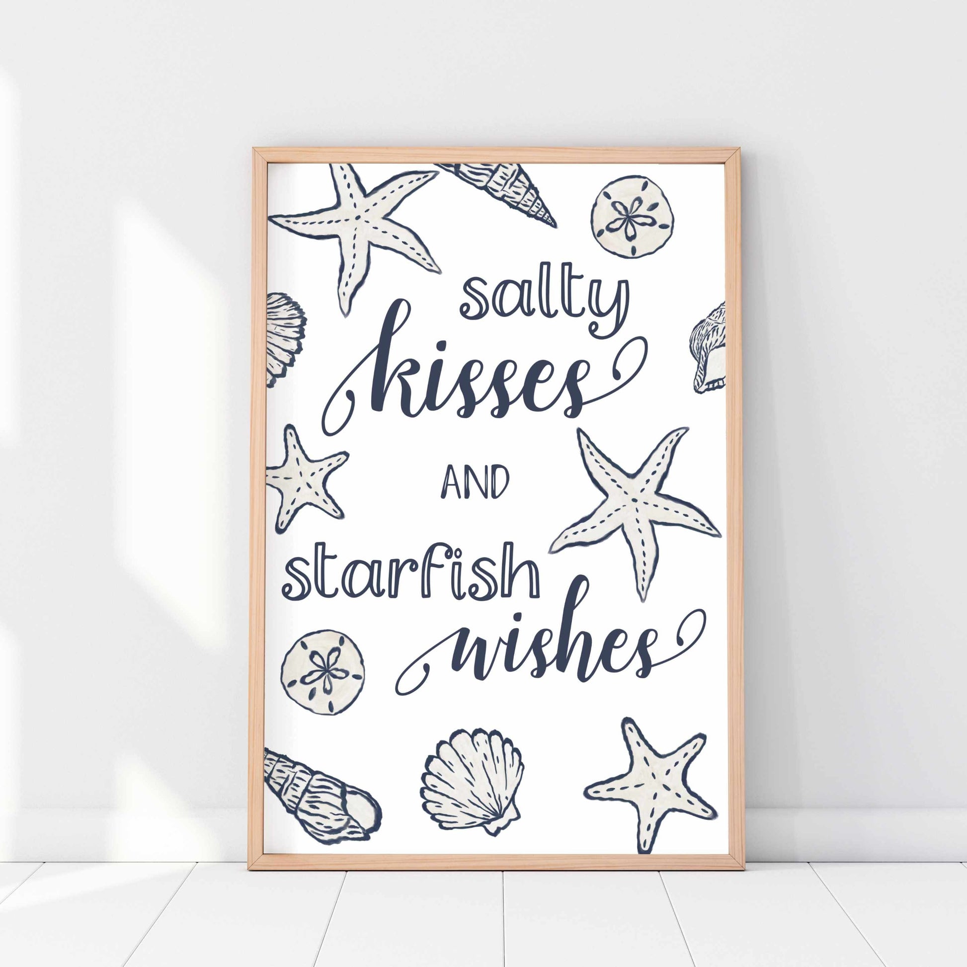 Printable Coastal Wall Art Print - Salty Kisses and Starfish Wishes