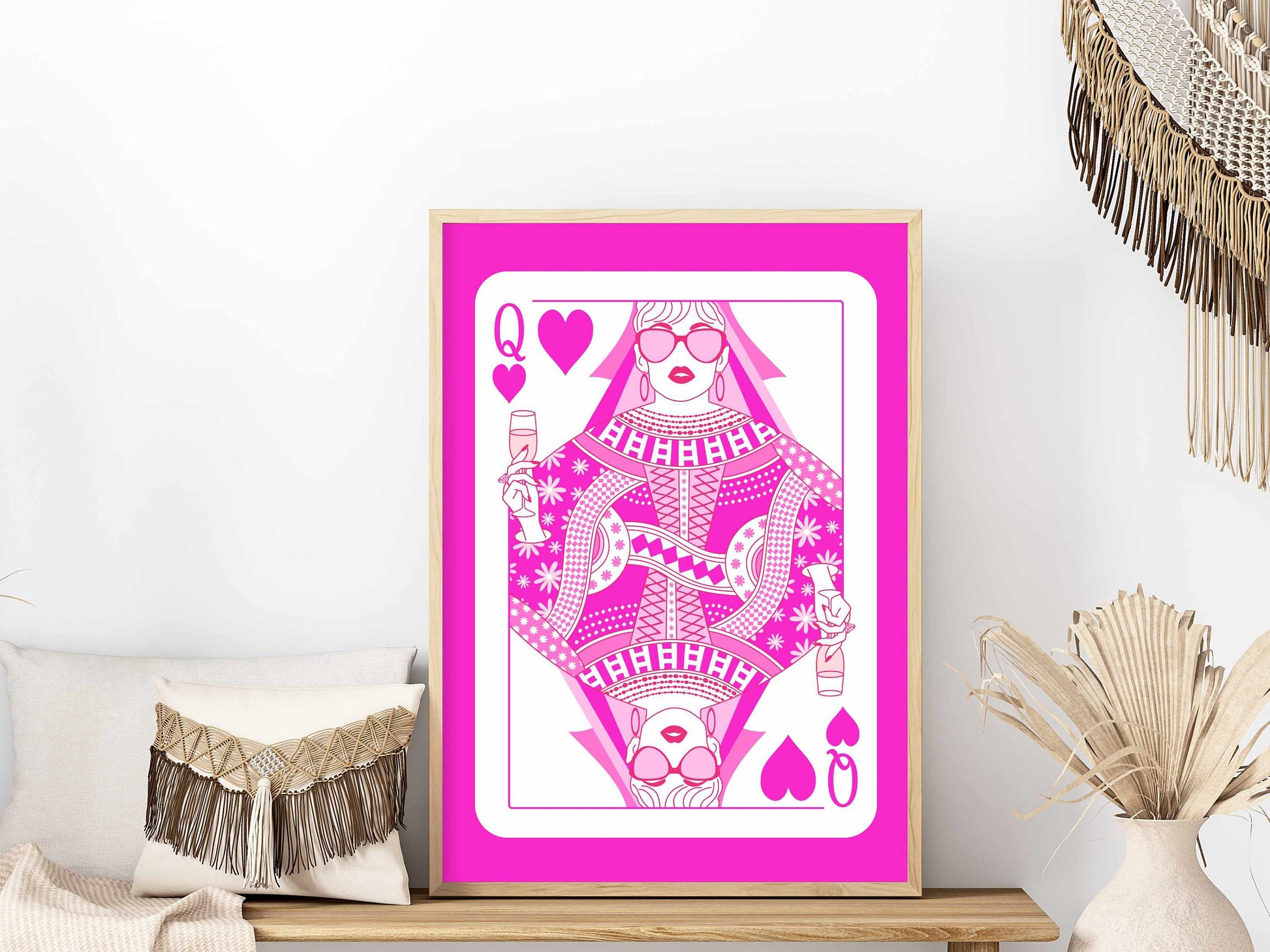 Printable Queen of Hearts Pink Wall Art - Aesthetic Y2K Poker Cards Print - College Dorm Room Decor
