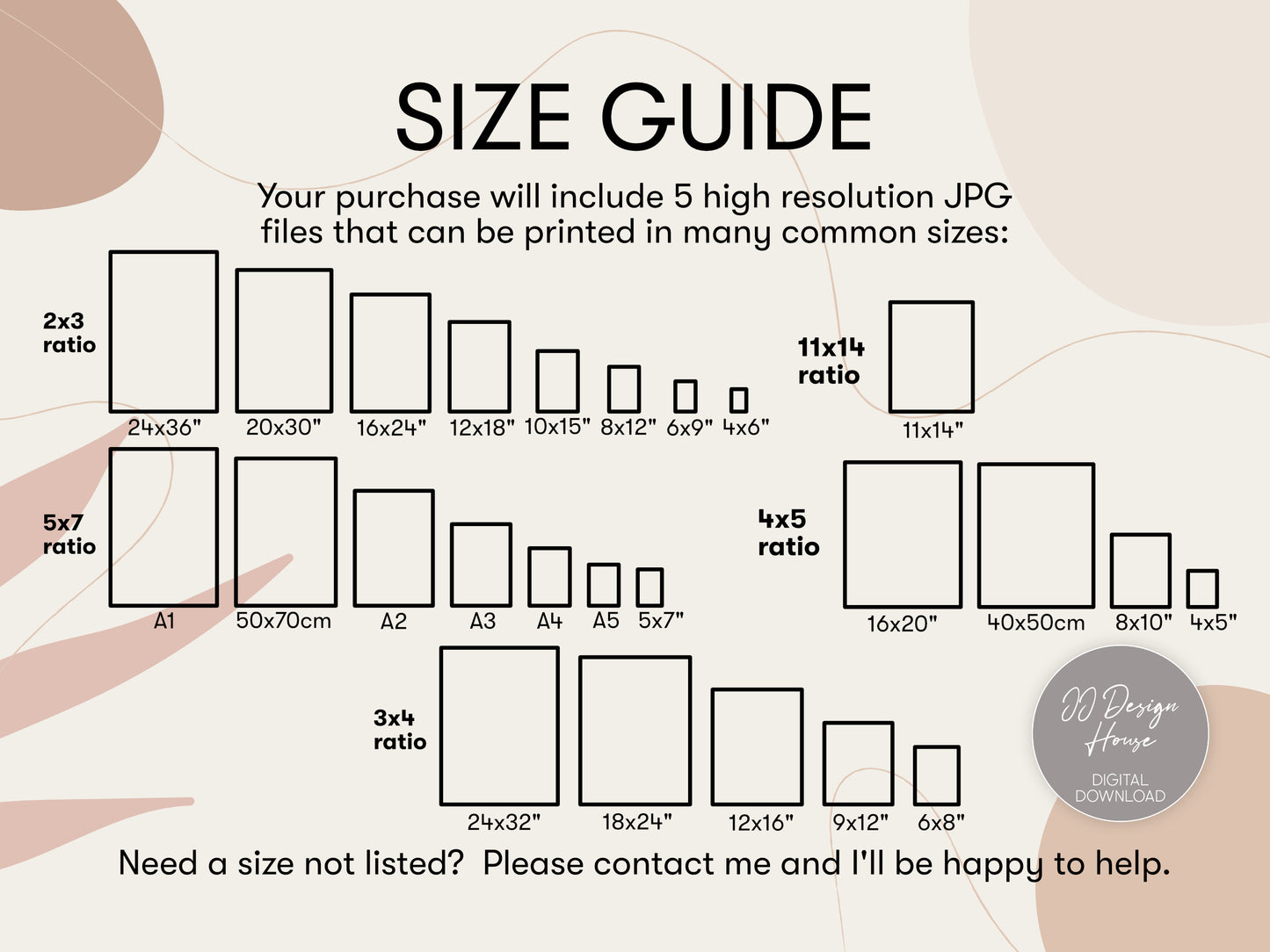 What's included: High-resolution JPEG files cropped to fit standard frame sizes (see included sizes listed above). A simple print guide with suggestions is also included.