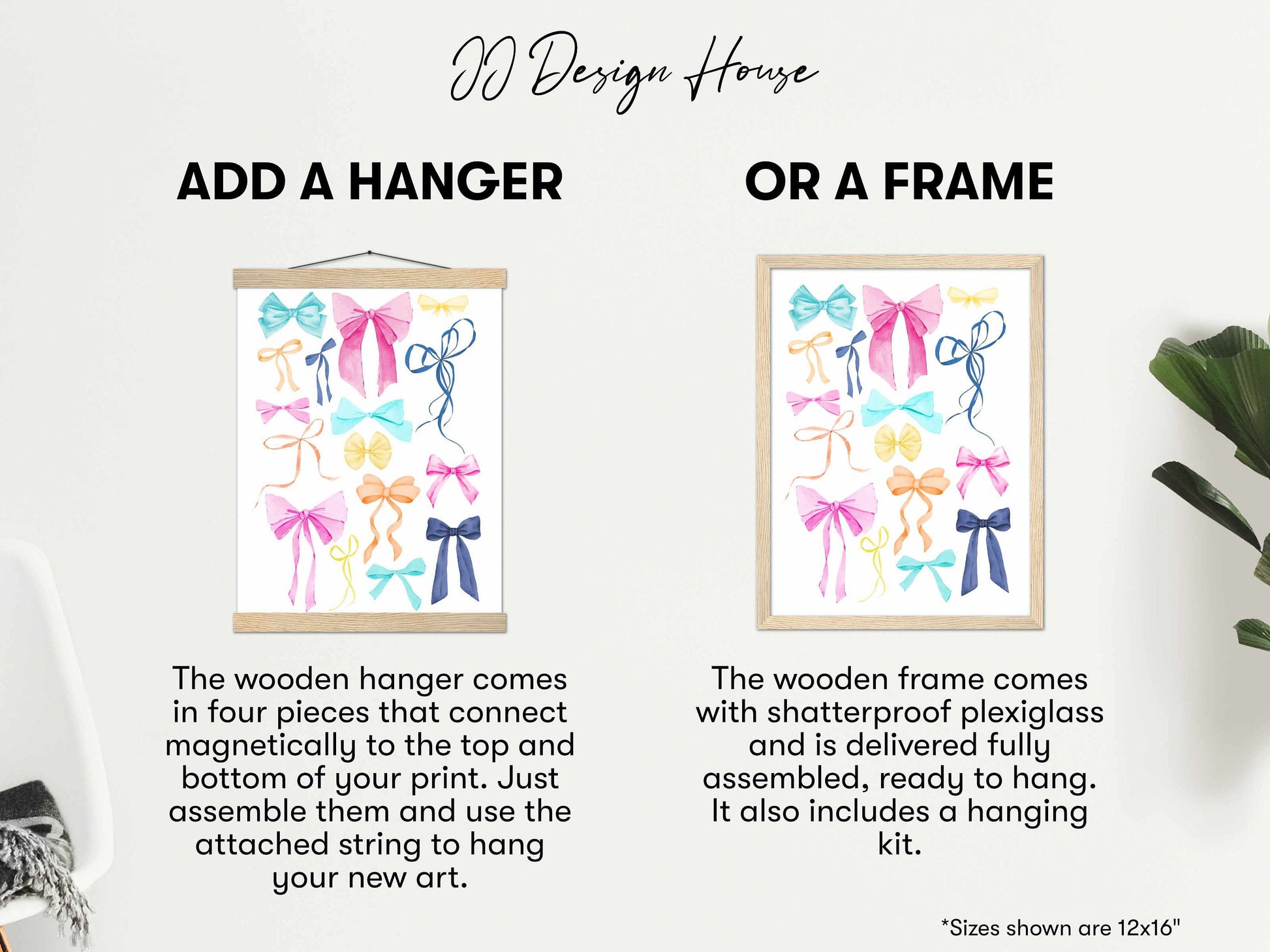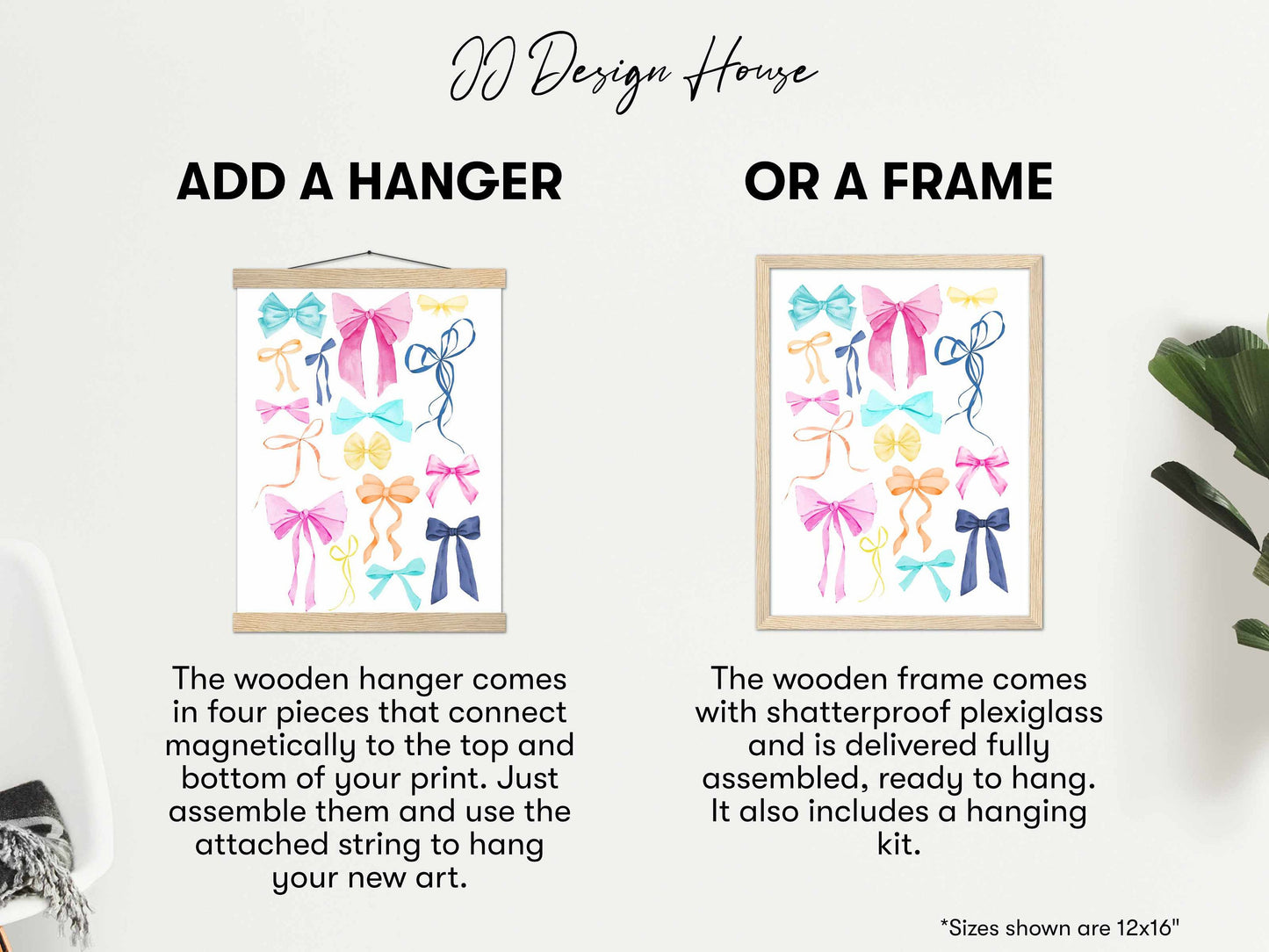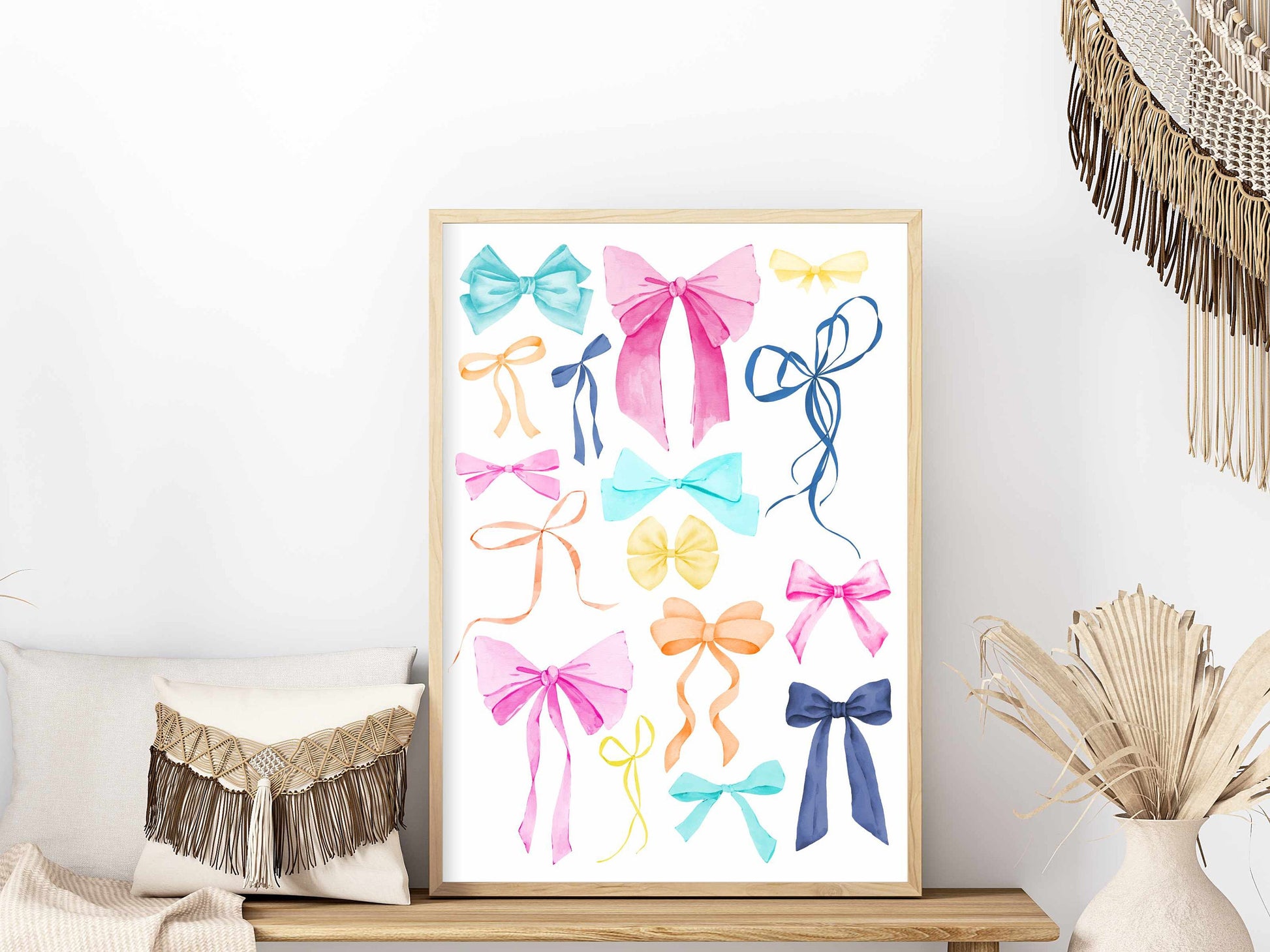 Printed Coquette Room Decor Watercolor Bow Wall Art