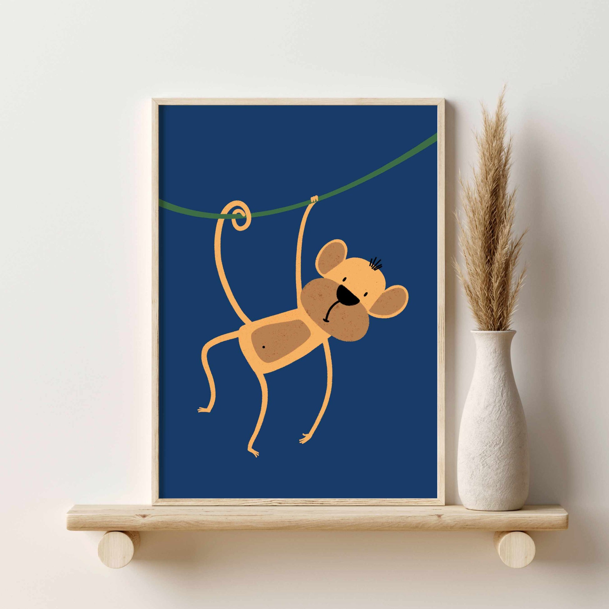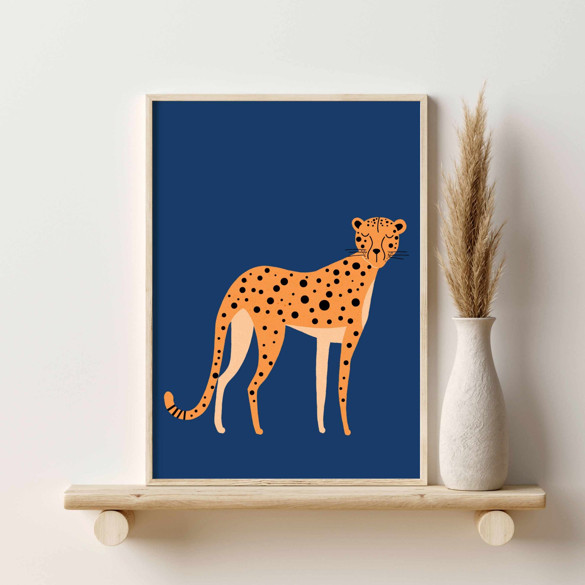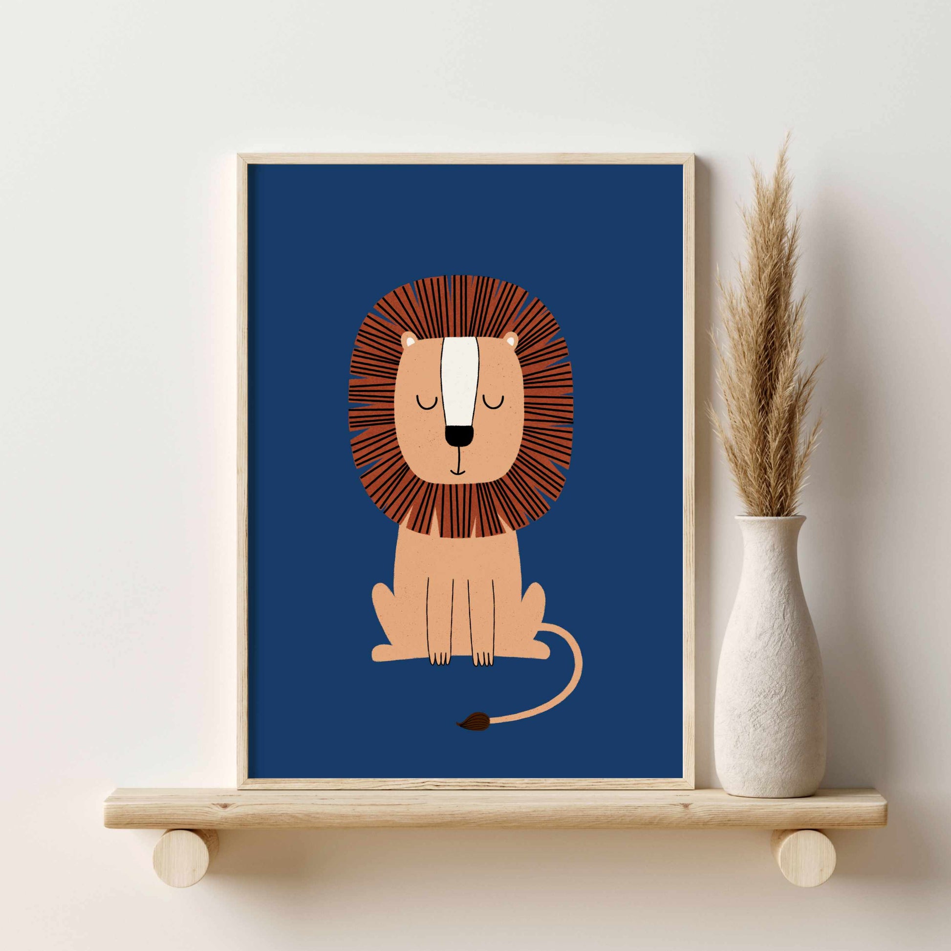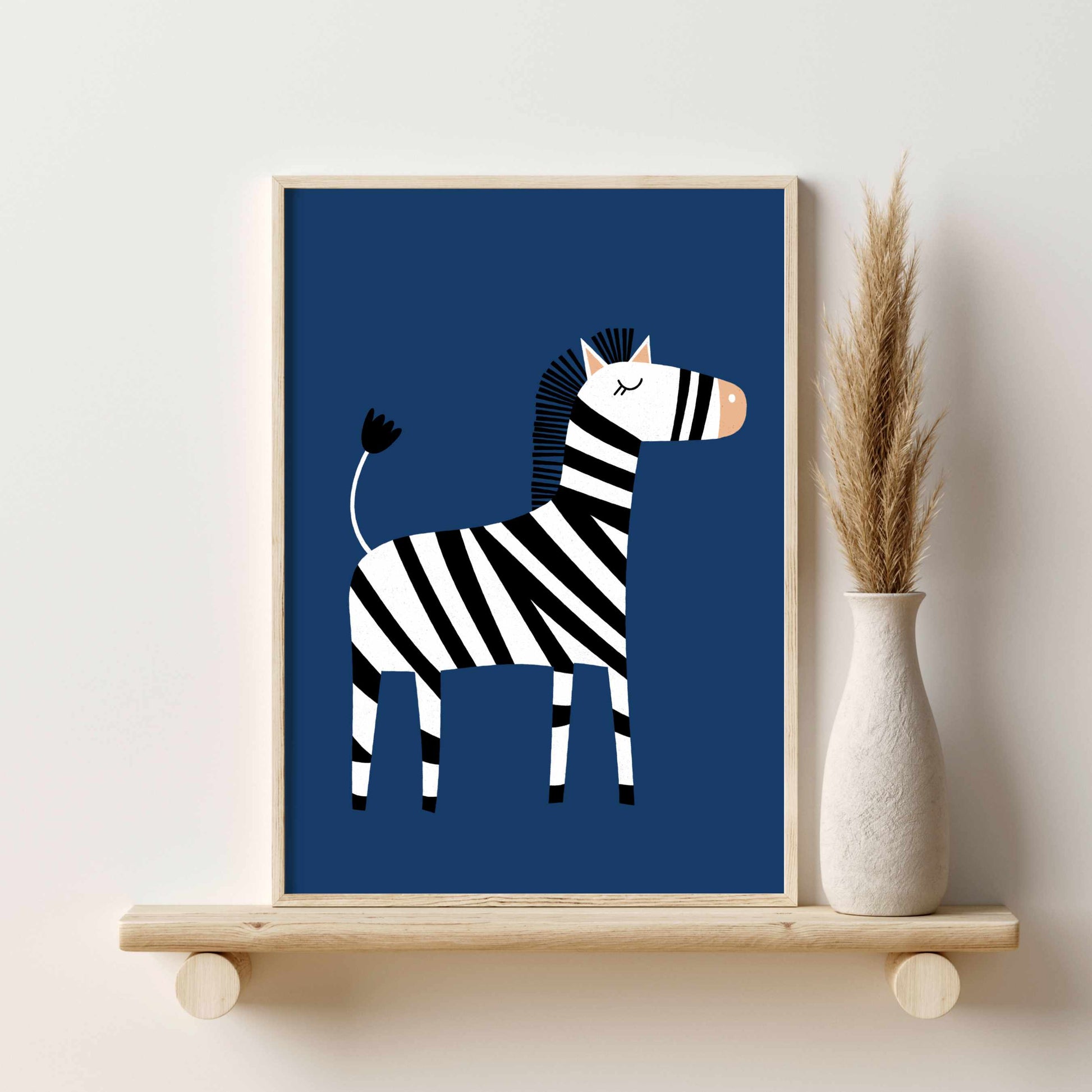 Printed Safari Nursery Wall Art Set of 6 Prints, Navy Blue Nursery Art