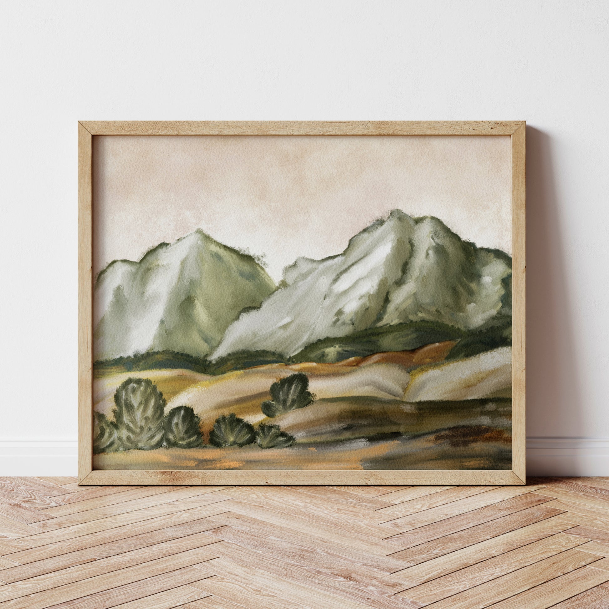Printed Sage Green Watercolor Mountain Wall Art