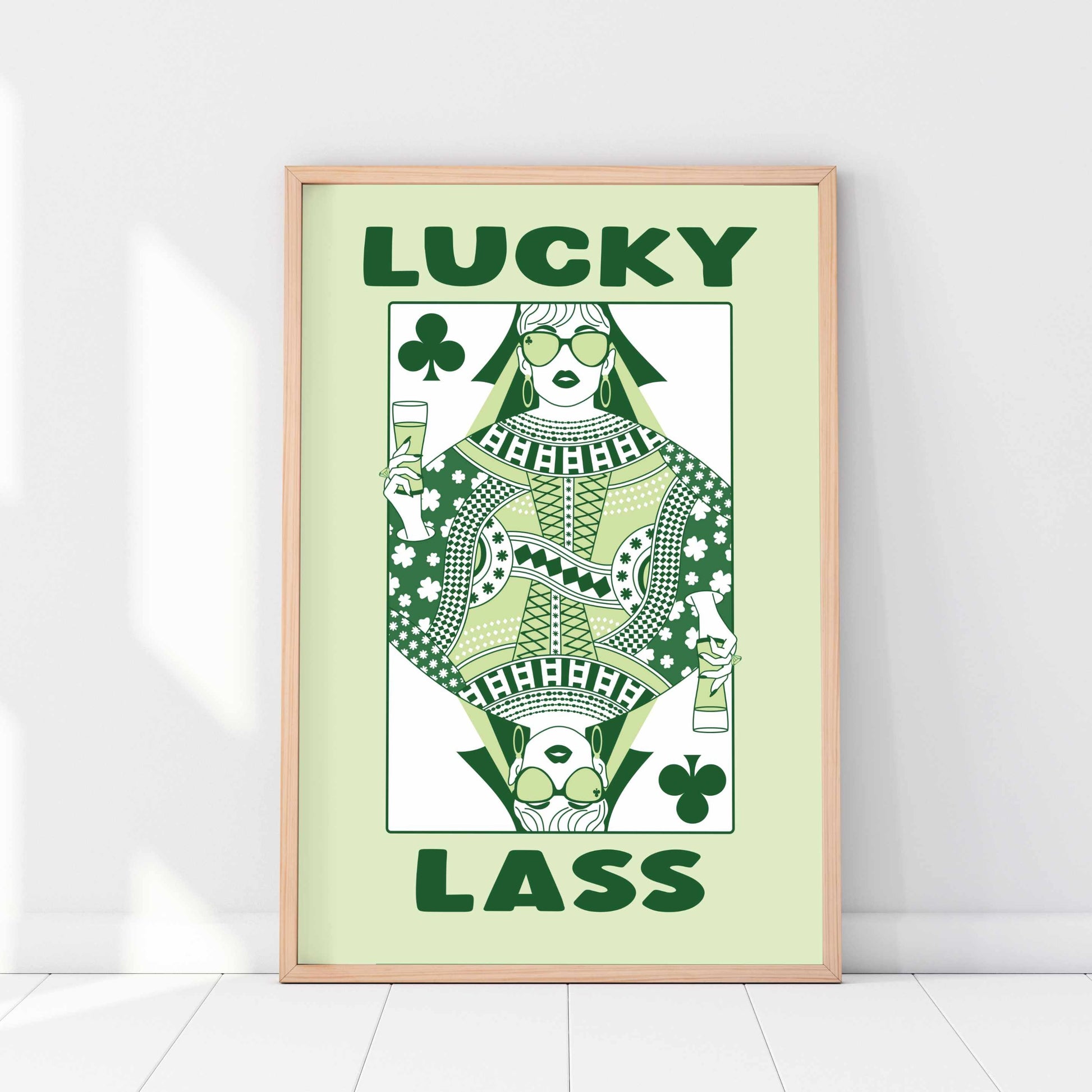 Printed St Patrick's Day Decor Poster, Queen of Clubs Lucky Lass