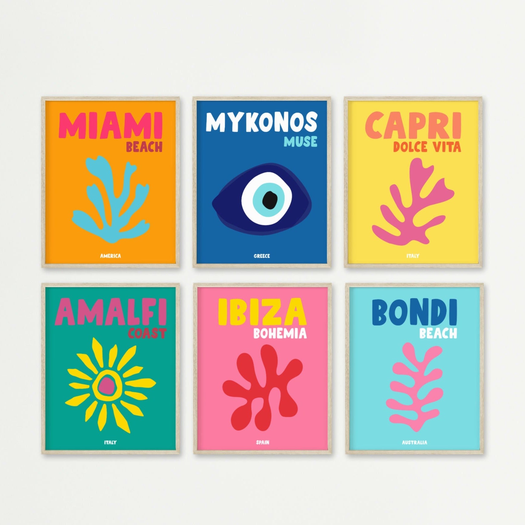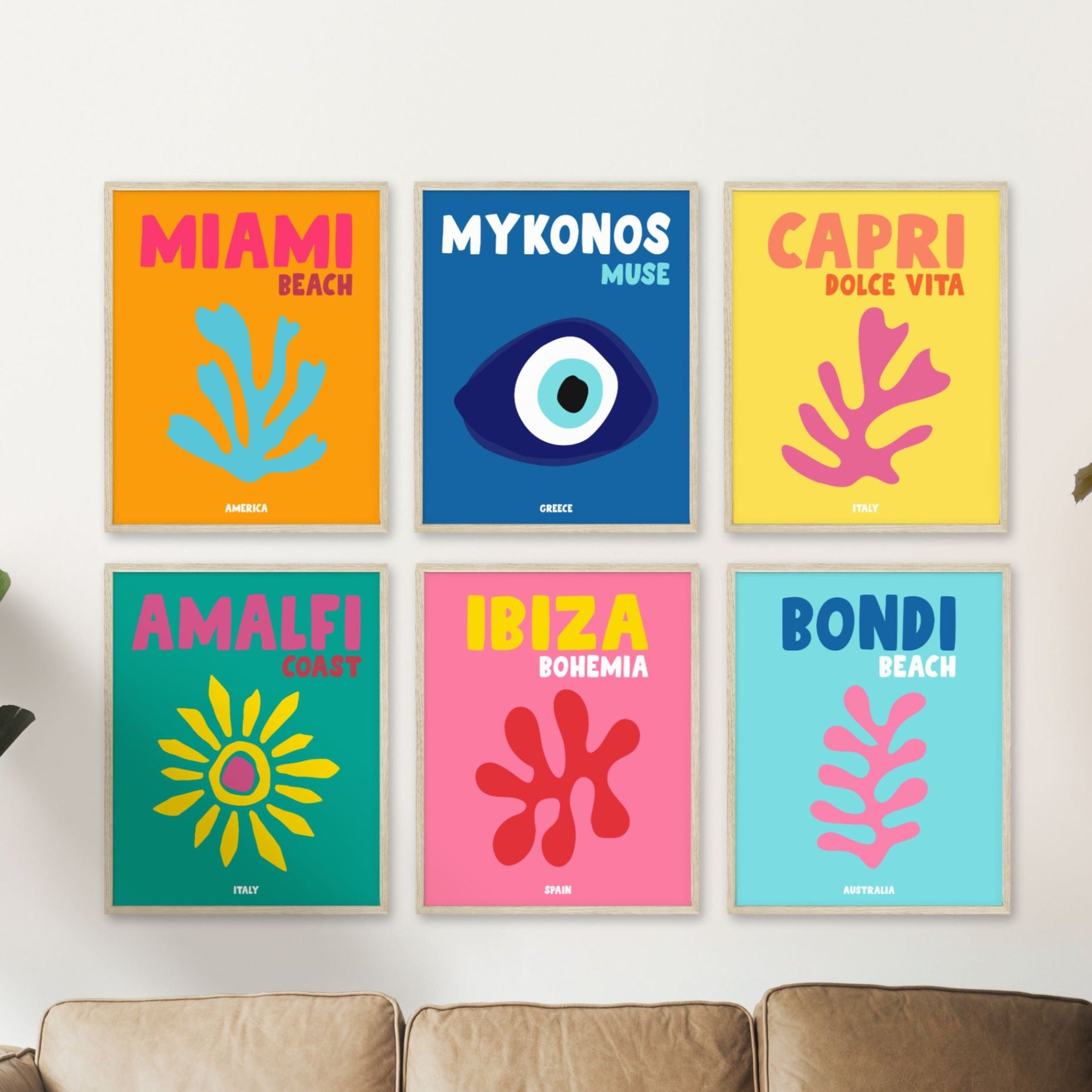 Fun, exciting, and free. This colorful art set of travel destinations will take your space on a trip around the world and is perfect for above the couch living room decor.